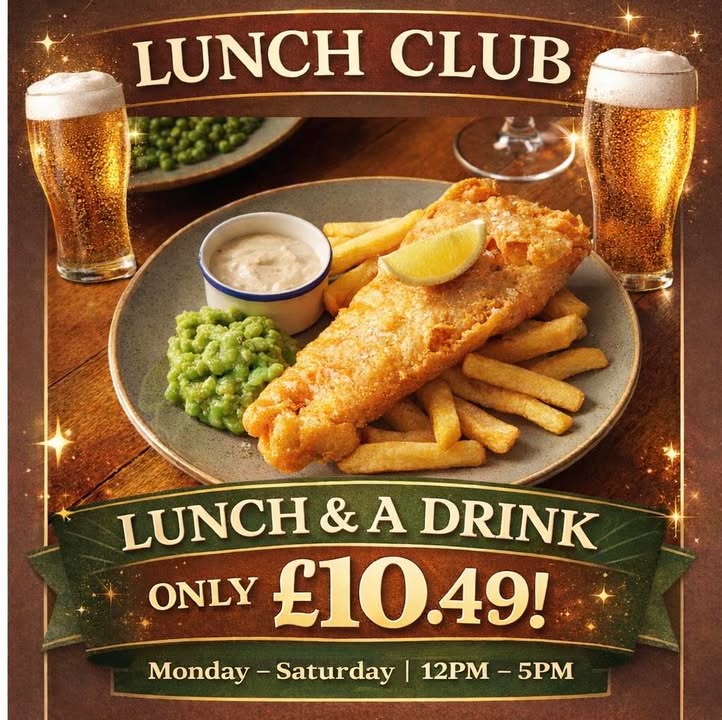 Join us from 12–5pm, Monday to Saturday, for lunch and a drink from just £10.49. Take your pick from selected draught lager, cider or ale, our house wines, or any soft drink. #localpub #pubfood