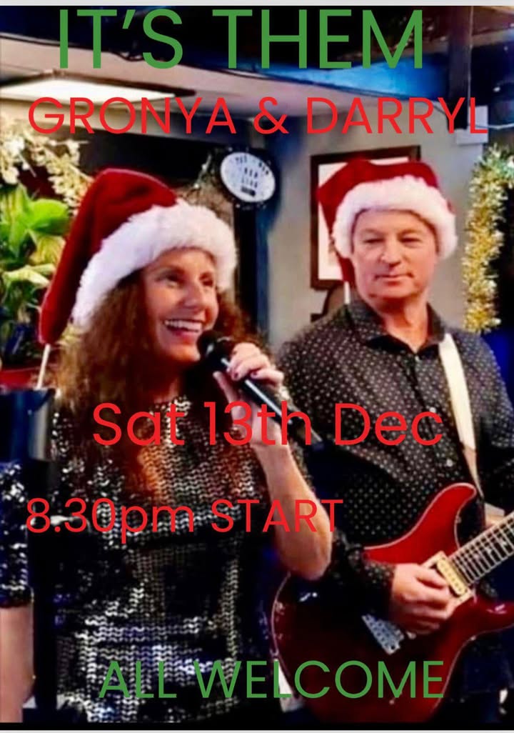 • Sat: Live music from ITS Them — Gronya & Darryl at 8.30pm